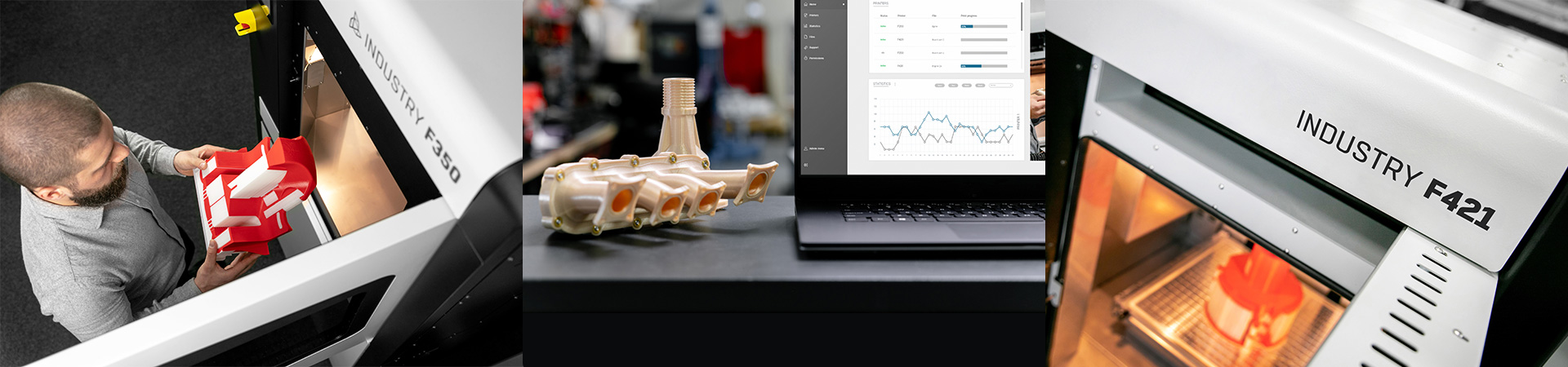 Das kleinere Äquivalent von Industry F421 ist eine Lösung für diejenigen, die keinen so großen Arbeitsbereich benötigen. Das Modell F350 weist auch aktiv beheizbare Druckkammer, Doppelextruder sowie Autokalibrierung auf. Genauso wie beim größeren Äquivalent finden Sie hier eine separate Kammer zur Lagerung und Trocknung von Filamenten vor der Arbeit.