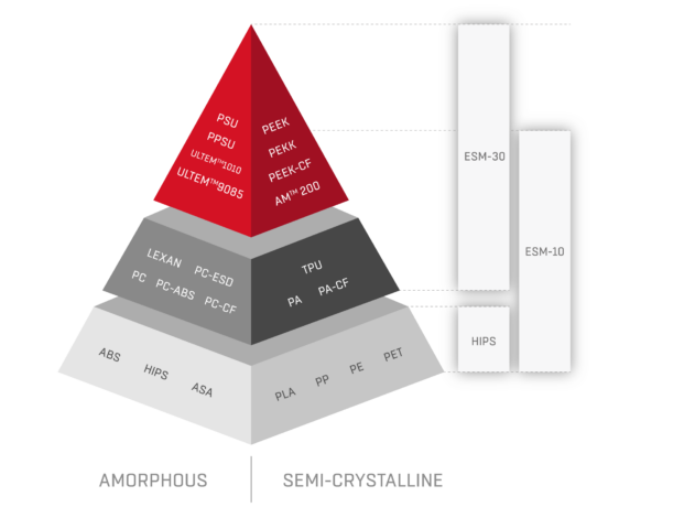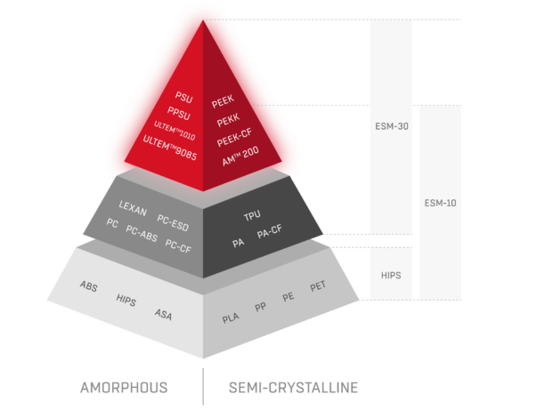 Print models resistant to high temperatures and chemicals with extraordinary mechanical properties. PEEK, PEKK and ULTEM are used in Aerospace, Oil and Gas, Medical and Automotive industries. Reduce the cost of traditional manufacturing with 3D printing with filaments made of high-performance polymers.