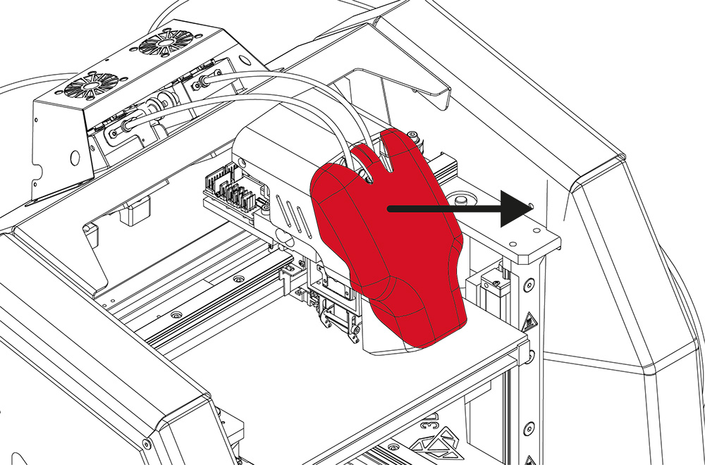 2. Switch off all heating elements of the printer and wait until they are cooled down completely.