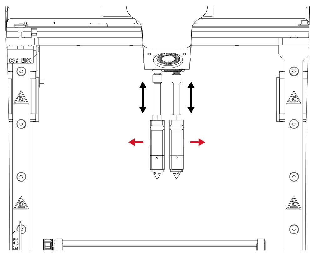 Each time after completed printing, clean the hotends by removing the remaining molten/burnt material that may be on the outside of the nozzle.