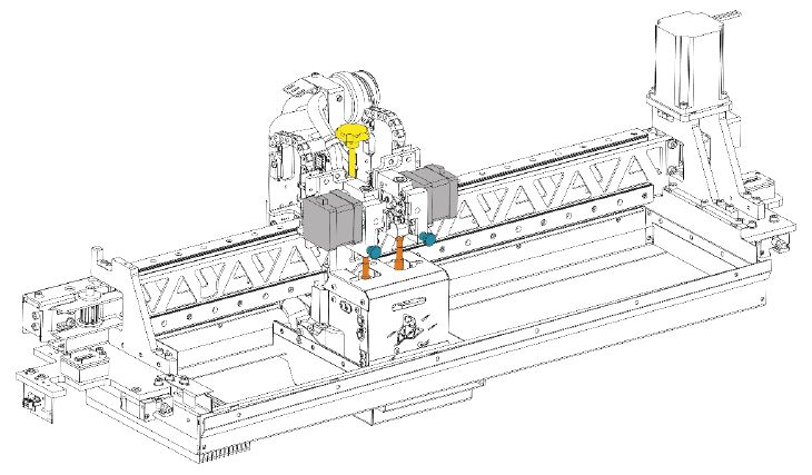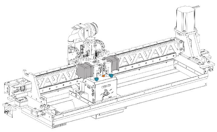 - The corresponding hotend will be set to the active position, the printer will read the axis reference positions and the print module will be set up in the cleaning station.