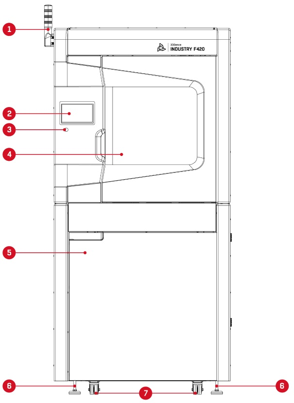 WARNING: After the printing process is completed, the working chamber door is locked and cannot be opened. When the temperature in the working chamber is lower during the cooling process the door can be opened, preceded by an appropriate message. The manufacturer does not recommend opening the door before the cooling process is completed. This option has been made available only to users with considerable experience with the printer. Before opening the door make sure that the hotend has cooled down and positioned at the X and Y axes zero position to prevent burn injuries.