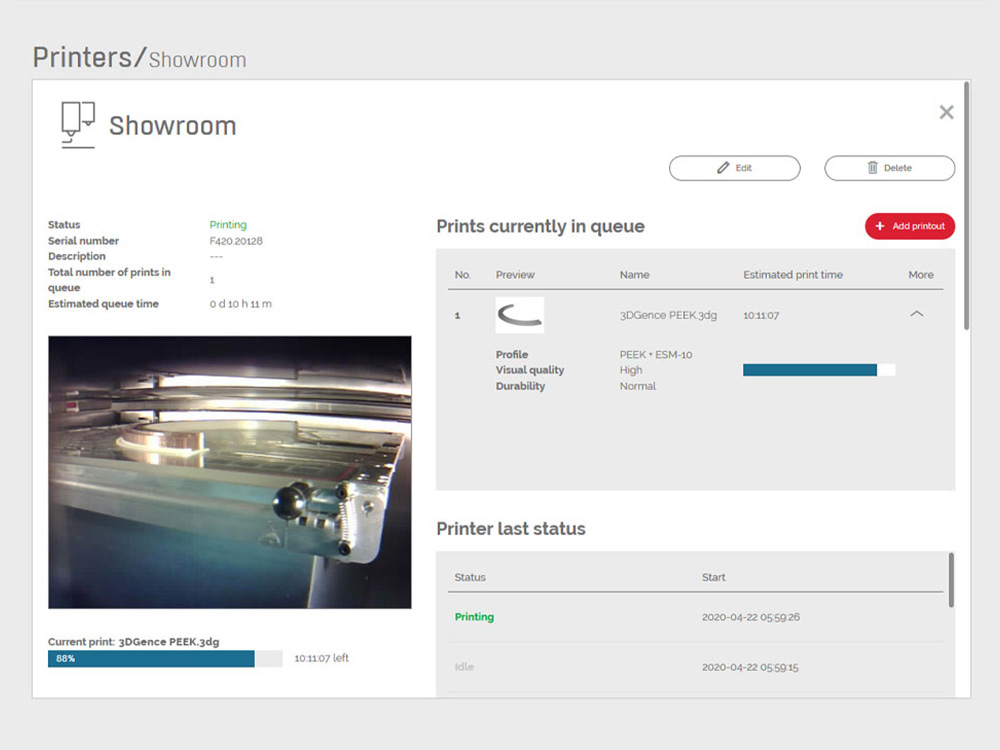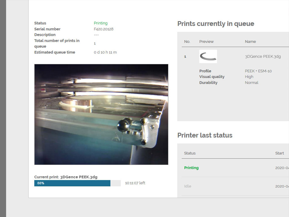 Użytkownik może uruchomić, anulować lub skolejkować wydruki. Klient otrzymuje pełną kontrolę nad procesem i zleceniem, nawet na wielu drukarkach, a także monitorowanie w czasie rzeczywistym stanu maszyny i druku.